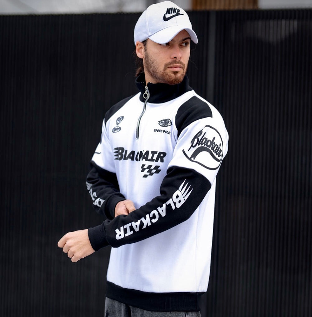 Black Air Racer Y2K Half Zip Sweatshirt – Trendy Streetwear Fashion